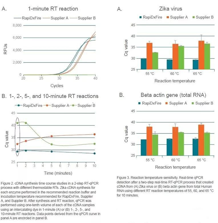 RapiDxFire? Thermostable ReverseTranscriptase一種顯著優于常用的MMLV和AMV逆轉錄酶的方法,可用于快速合成短cDNA(<1 Kb) 。