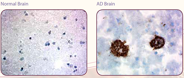 該克隆號在正常(左圖)和AD(右圖)冷凍腦組織切片中得到驗(yàn)證,其中3A1可以特異免疫染色AD組織中的淀粉樣斑塊,然而在正常腦組織中未觀察到染色。