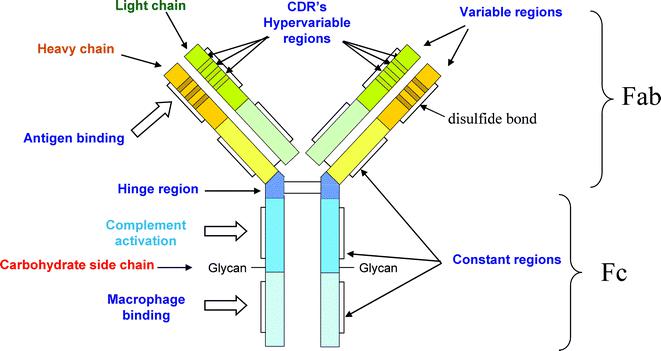 F(ab’)2片段:該種抗體是由兩個靠二硫鍵連接的用于結(jié)合抗原的Fab片段組成,這些抗體用在特定的情況中,如需要避免抗體與具有Fc受體的細(xì)胞結(jié)合的情況。