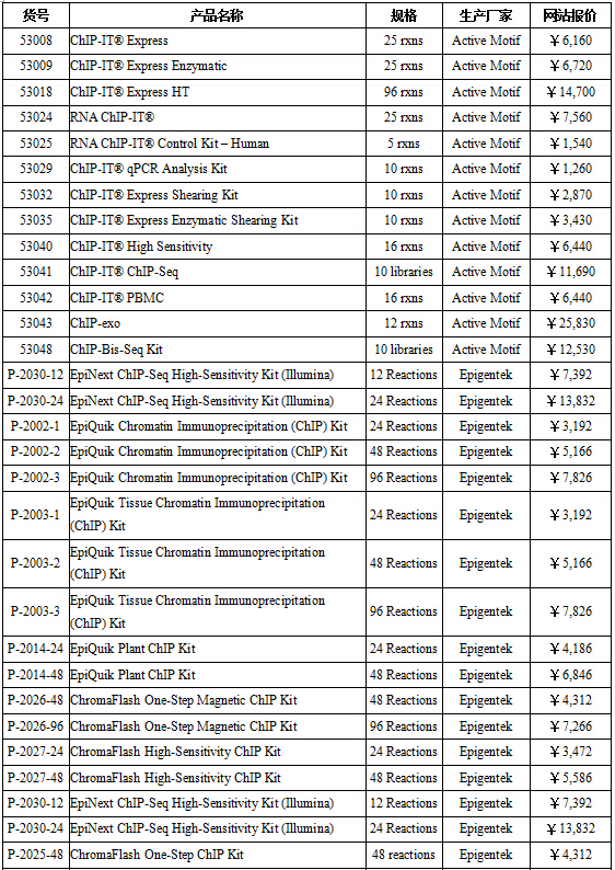 ChIP相關產品列表: